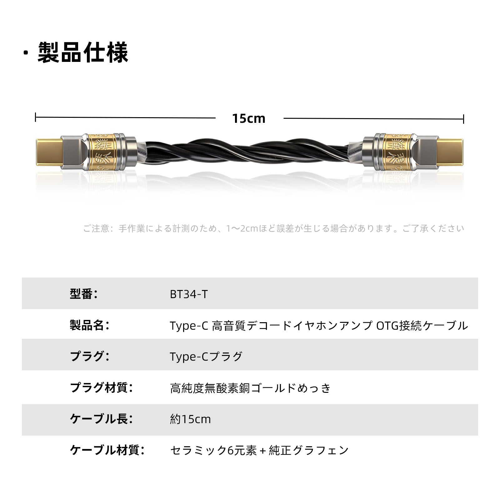cooyin BT34-T-4 Type-C to C OTG接続ケーブル Hi-Fi 15cm 純正グラフェン セラミック6元素 金メッキプラグ ロスレス伝送 デジタルオーディオケーブル
